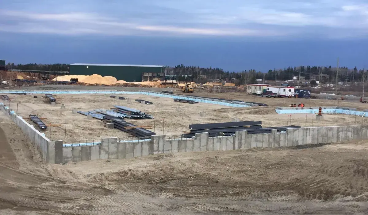 155 Archer Drive in Kirkland Lake is a 30,000-square-foot pre-engineered metal building completed ahead of schedule. Extensive rock blasting and earthworks were undertaken to create dedicated storm water facilities, and all car and truck parking includes block heaters for winter use. The project benefited from the dedication of subcontractor partners who traveled seven hours to assist with construction.