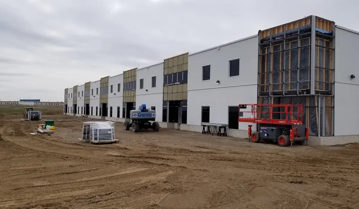 This building incorporates R40 insulated panels and R30 roof insulation to reduce carbon impact and lower HVAC operating costs. Designed with tenant efficiency in mind, it includes additional tractor trailer parking and on-site storm water filtration with evapotranspiration to minimize off-site processing. A natural biofilter further improves water quality, while the north side overlooks a protected pond that supports bird and mammal habitats.